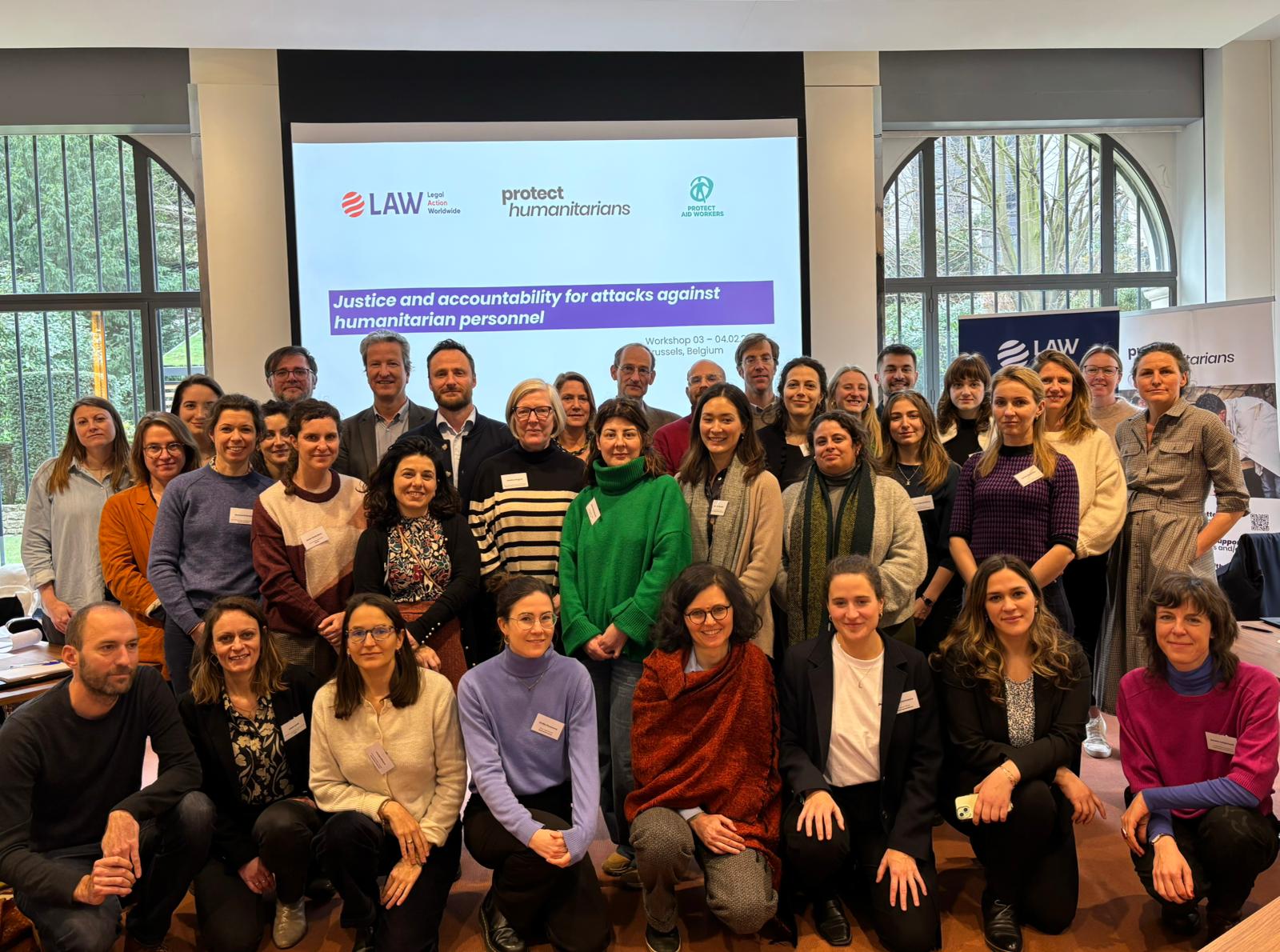 Brussels, 3-4 February– A critical workshop, organized by Protect Humanitarians and Legal Action Worldwide (LAW), addressed the growing threats to humanitarian aid workers globally and identified concrete ways forward. The event, “Justice and Accountability for Attacks Against Humanitarian Personnel,” brought together more than 40 humanitarian NGOs, UN, legal professionals, member states, and key stakeholders to discuss the urgent need to strengthen legal protection, demand accountability, and explore avenues for legal remedies for survivors and victims of violence against aid workers.