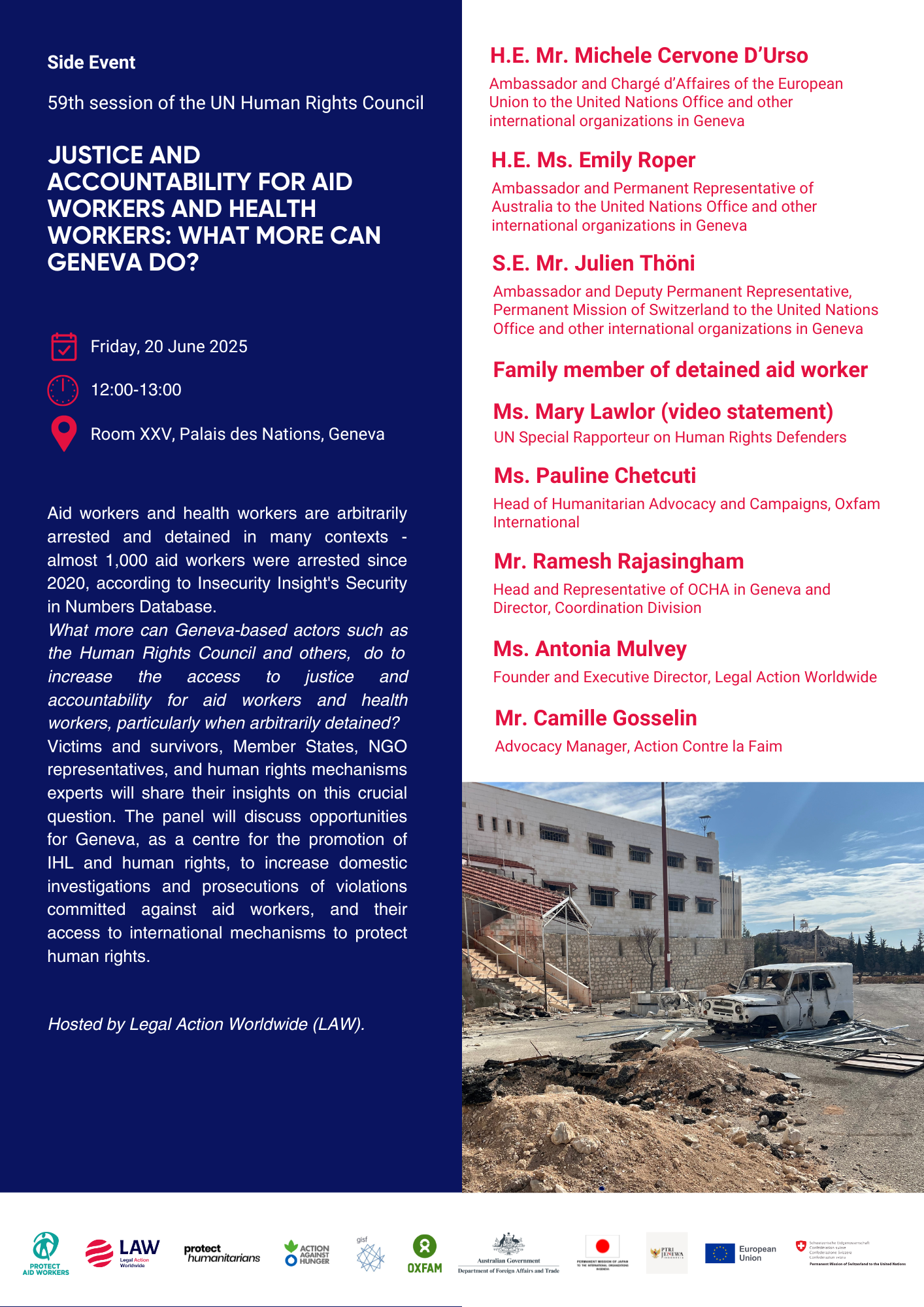 Join us at the UN Human Rights Council for a crucial side event on justice and accountability for aid and health workers: