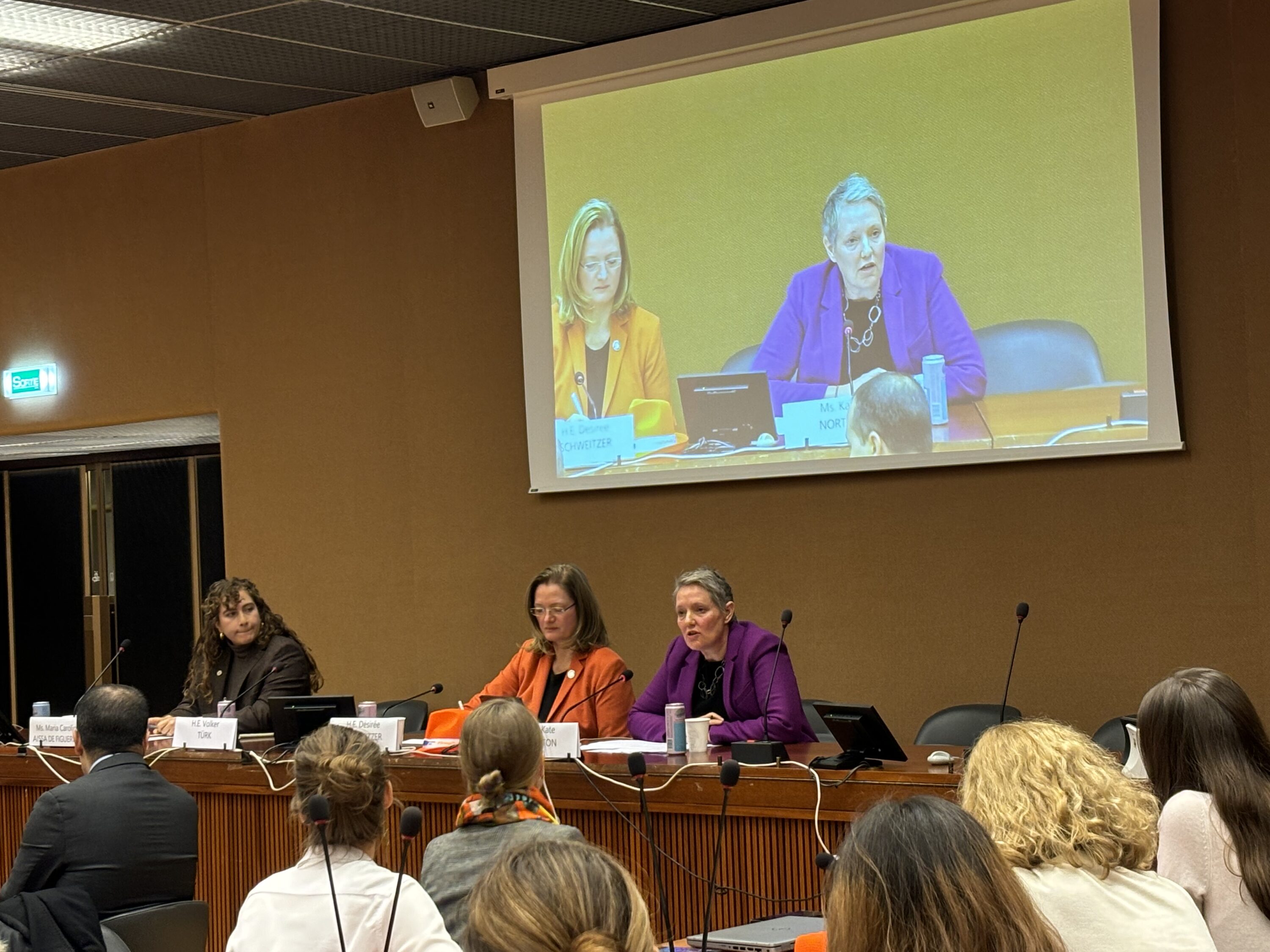 Throughout the event, there were also powerful contributions from other speakers, including Ambassador Désirée Schweitzer, Permanent Representative of Austria to the United Nations in Geneva, who moderated the panel. Ms. Rangita de Silva de Alwis, Member of the CEDAW Committee, shared her insights on the role of international human rights mechanisms in addressing GBV in conflict and humanitarian settings. Ms. Li Fung, Representative of OHCHR in Sudan, spoke about the dire situation in Sudan, where GBV has escalated amid ongoing conflict. Finally, Maria Carolina Aissa de Figueredo of the International Committee of the Red Cross addressed the harmful effects of stigma on survivors.